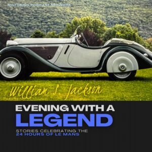 On EWAL, we have an opportunity to bring a piece of Le Mans to you, sharing in the Legend of Le Mans with guests from different eras of over 100 years of racing. We’re delighted to introduce 91-year-old William S. Jackson, one of the co-founders of the Society of Automotive Historians, who isn’t just a veteran of motorsports. From being drafted during the Cold War to racing alongside legends like Carroll Shelby and Sterling Moss, Bill’s journey to Le Mans is a tale of grit, ingenuity, and unexpected grace. On this special Veteran’s Day episode, we’re taking you back to 1958 to a time when racing was raw, personal, and deeply intertwined with the world’s shifting tides. You’ll hear how a flunked college career turned into a military path that led him to Germany, where a chance friendship with a former Luftwaffe pilot changed his view of war, peace and humanity. And you’ll ride shotgun as Bill recounts his time behind the wheel of a 1935 BMW 315 restored with reverence and raced with heart on the hallowed grounds of Le Mans.